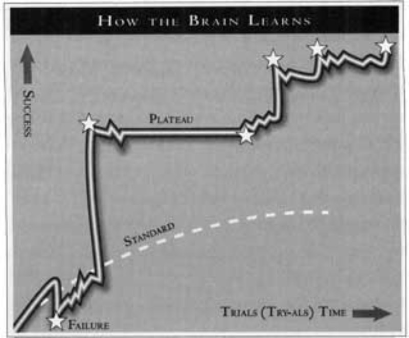 In reality the learning curve doesn’t follow a smooth progression like this. There will be big successes, major failures and plateaus but these cancel each other out so an average 1% increase per reading is definitely realistic.